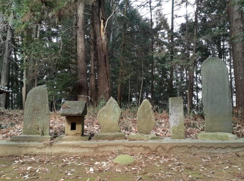 左から羽黒山・湯殿山・月山、(?)、愛宕山・秋葉山、神明塚・帯屋塚