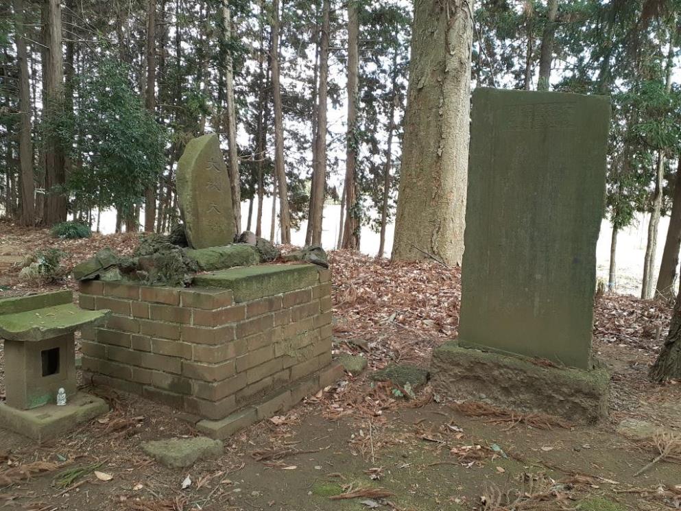 大玖大神の石碑の台座にはレンガが使用されている。