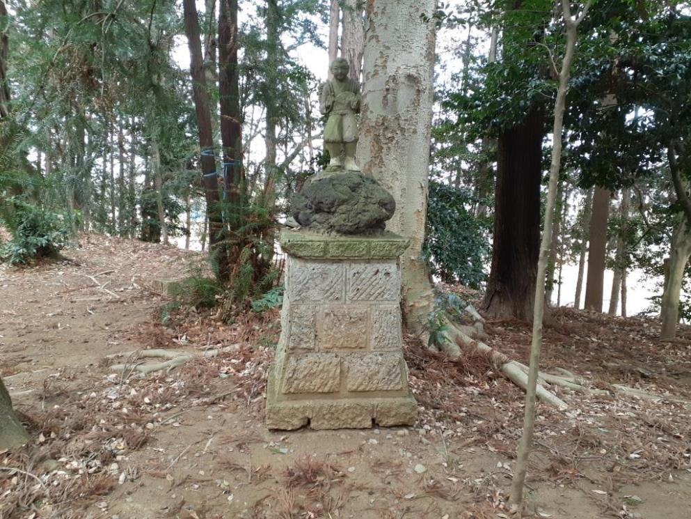 境内にある二宮金次郎像 参道左側にある力石(石神)