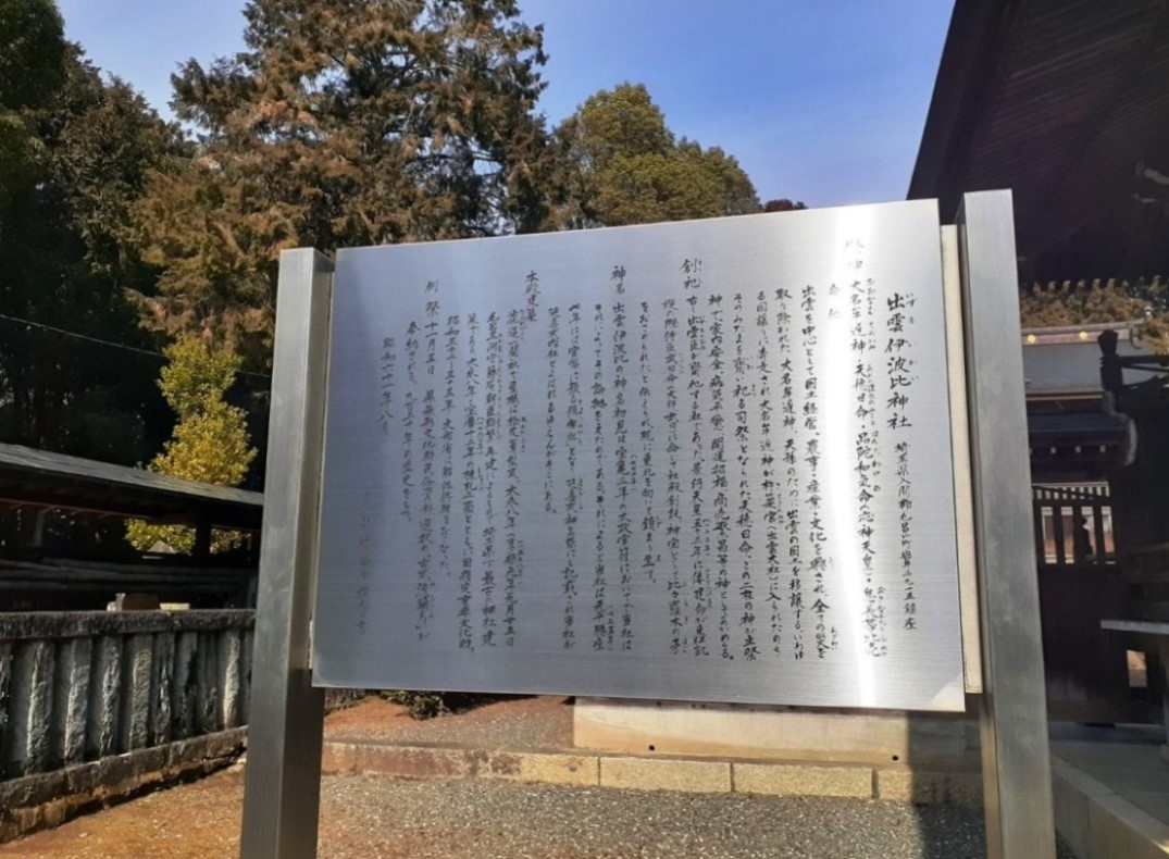 国賓出雲伊波比神社 本殿 社号標 拝殿横にある案内板