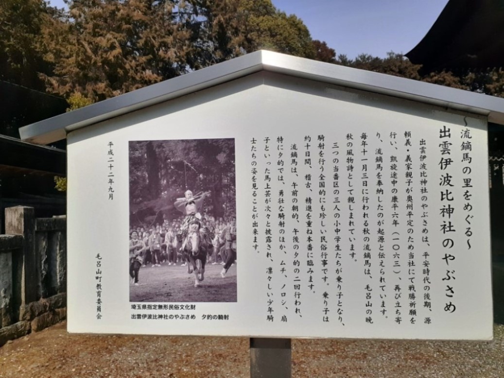 毛呂山町の流鏑馬神事は昭和33年に県の選択選択無形民族文化財に指定されている。