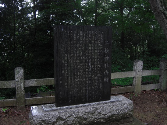 社殿左側にある二柱神社の由緒の案内板 二柱神社