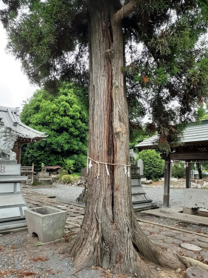 拝殿手前左側に聳え立つご神木(写真左・右)