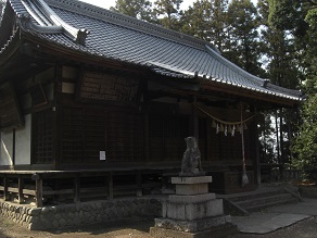 本殿 春日造、欅桧楡材、造営年不詳。明治以前は屋根は桧皮葺で千木と鰹木があり、柱などに葵の紋金具があったという。