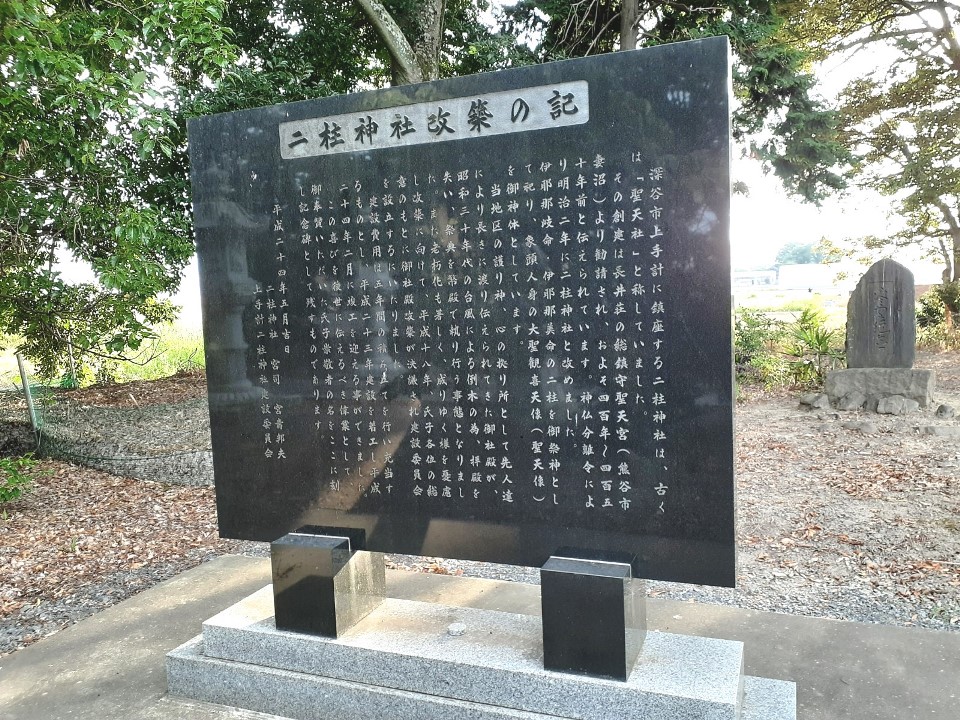 福川左岸の沖積低地の自然堤防上に位置する社。ただ、嘗てこの社近郊に利根川が流れていて、舟の安全を祈願して祀られた神社のようだ。一時期「聖天社」「聖天様」と呼ばれ時期もあったそうだが、明治維新後、旧称に復帰したという。