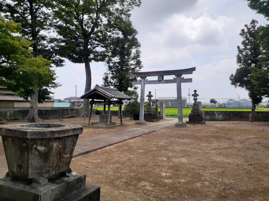 内ヶ島熊野大神社は上記の和菓子屋さんを左手に見ながら北上し、すぐ先にある手押しボタン式信号のある十字路を左折、250m程進むと左手に内ケ島熊野大神社が見えてくる。