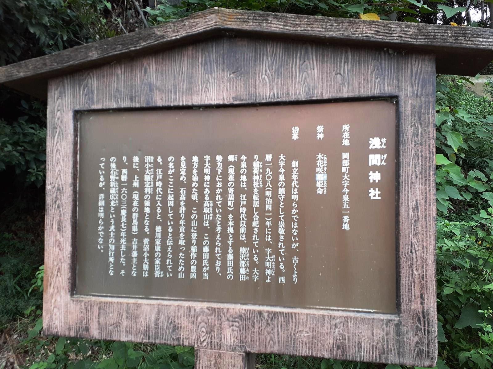 資料が乏しく、詳細不明。 石碑は左側浅間神社、右側は古峰神社と刻印。