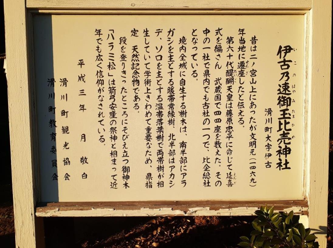 段を登りきったところにそびえ立つ御神木「ハラミ松」は箭弓安産の祭神と相まって近年でも広く信仰がなされている。(以下略)