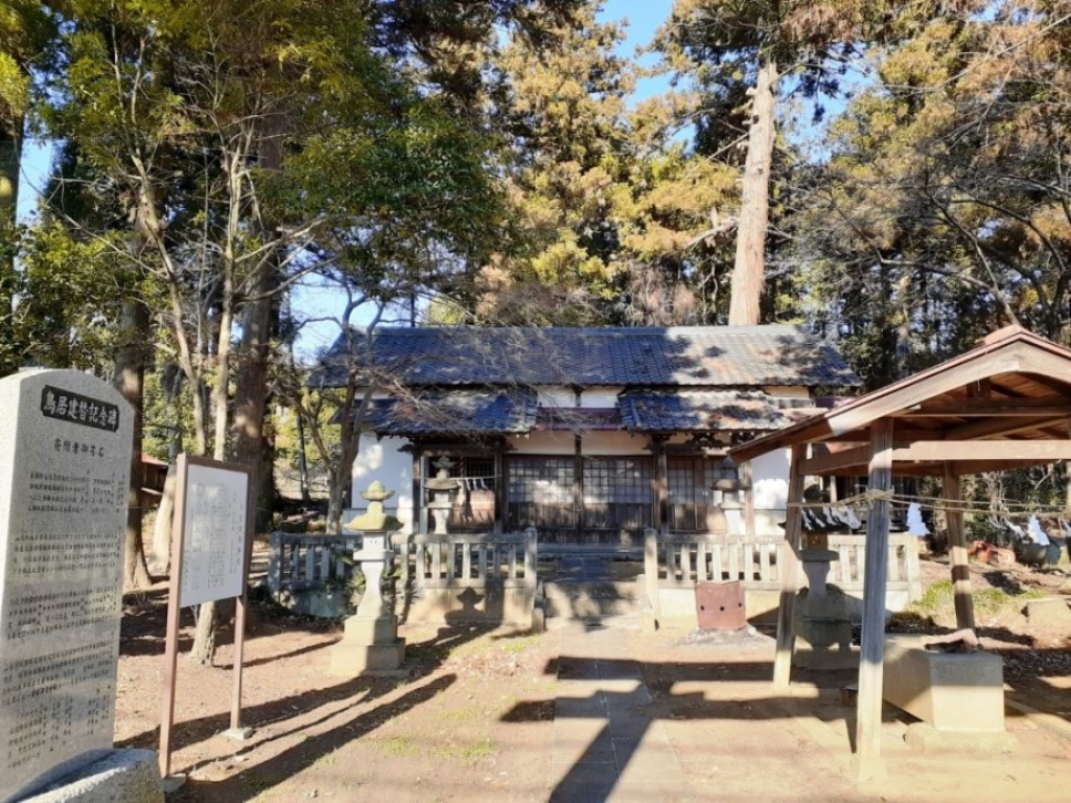また、別の祭神「藤原恒儀」は、青鳥判官と称し、隣地東松山市に在る青鳥城址の城主で、天長六年九月二十日の卒した人と伝えられる。