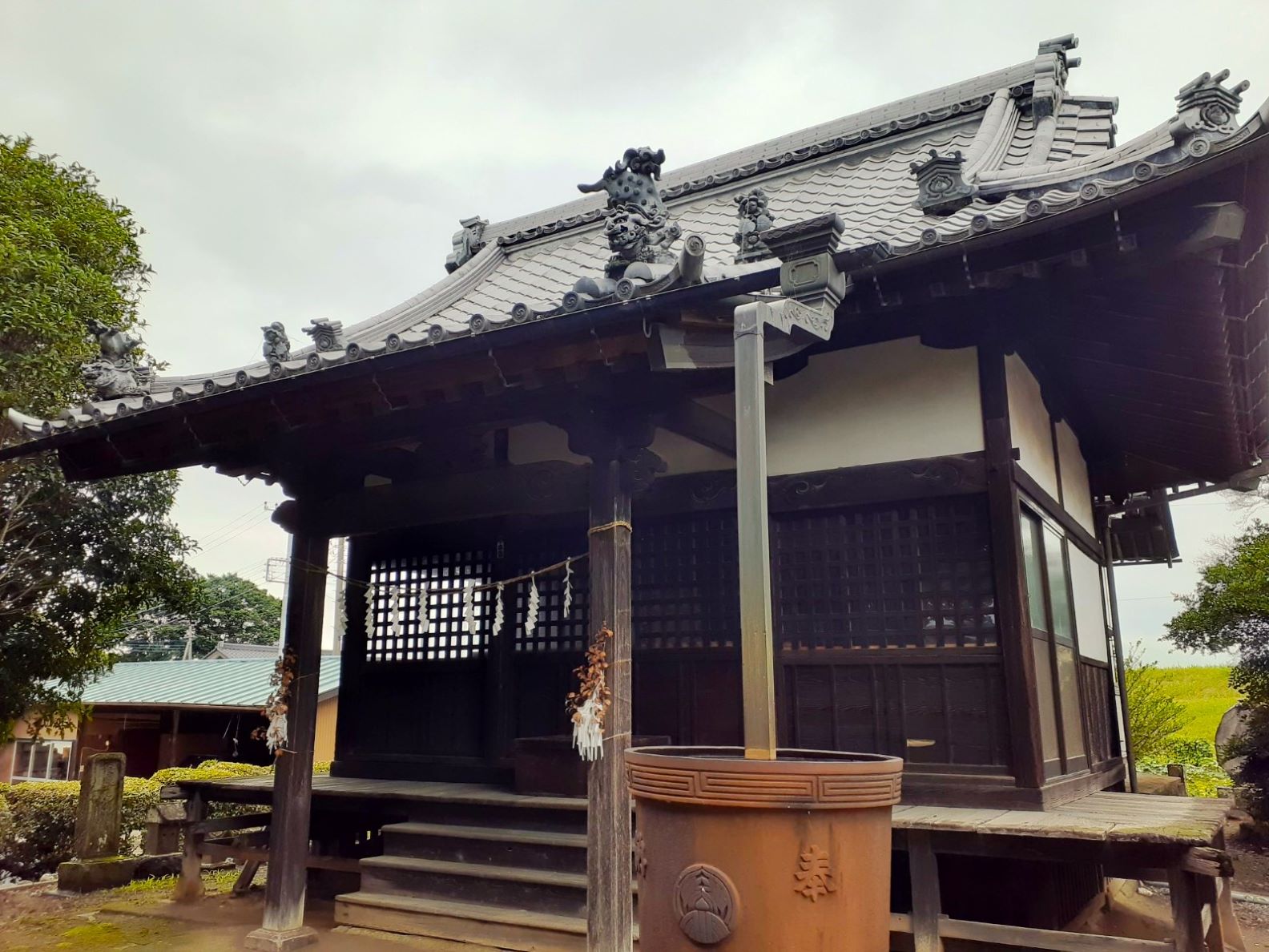 利根川と福川に挟まれた俵谷地域。嘗てこの旧俵瀬村は、北に流れる利根川には堤がなく、南には中条堤がそびえ、利根川の増水のたびに水が滞留しがちな「水場」の村であったようだ。ながらく水害と闘ってきた俵瀬の地の鎮守社ならではの配置に思えた。
