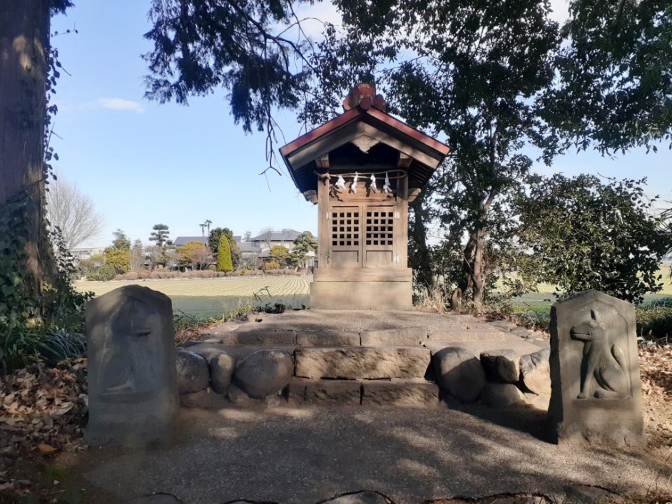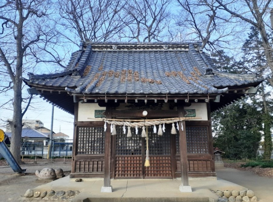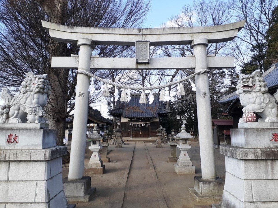「新堀新田集落センター」の隣、また「埼玉県立熊谷西高校」の近隣で、北側に鎮座している。集落センターの前には駐車禁止の看板が立てられていたが、神社の南側に駐車スペースがあったのでそこに停め参拝を行った。