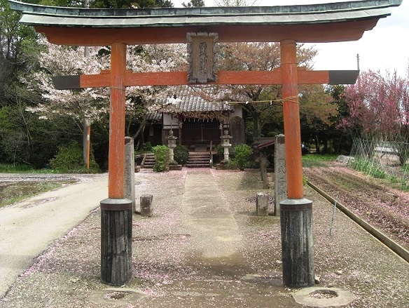 桜の季節がやや過ぎた時期に参拝したため、参道一面散った桜の花びらが広がる。ただその風景もまた美しく、暫し時間も忘れさせてくれる。社と桜のコントラストはやはり良いものだ。
