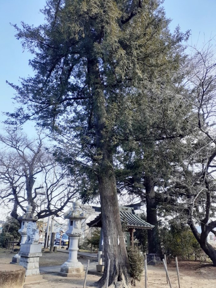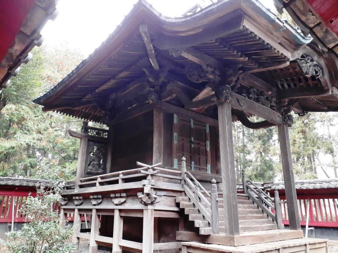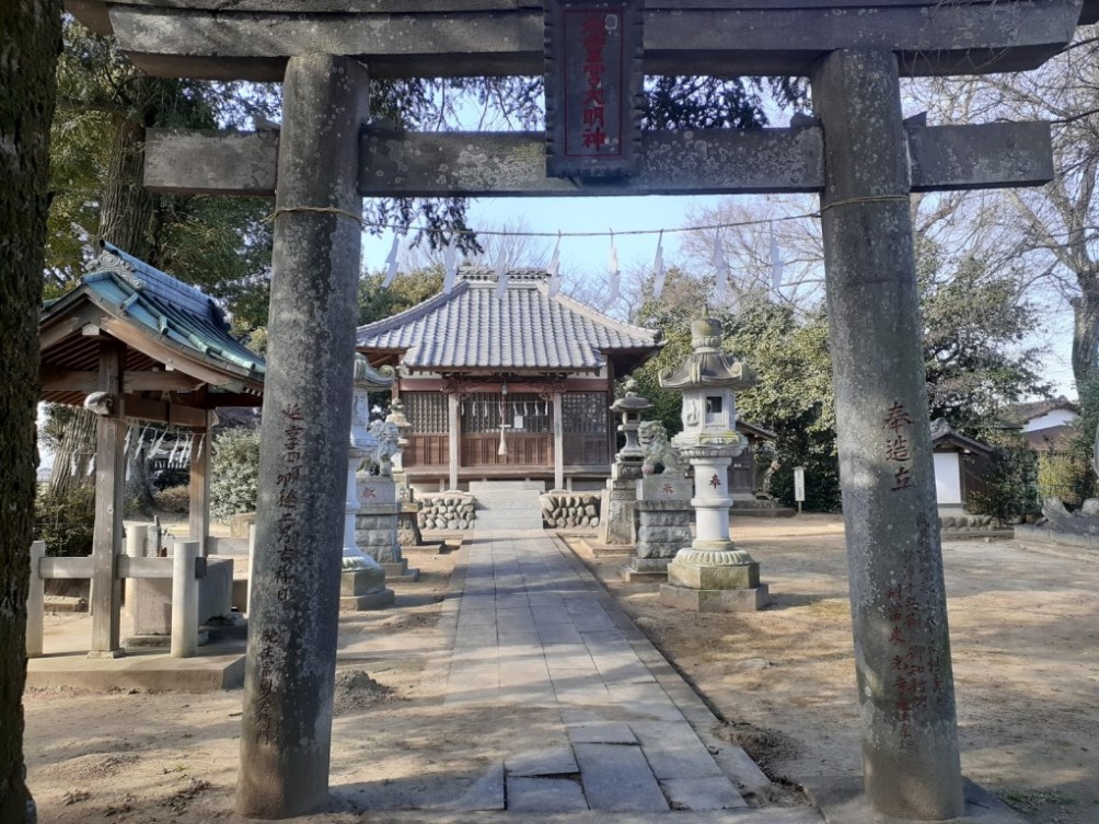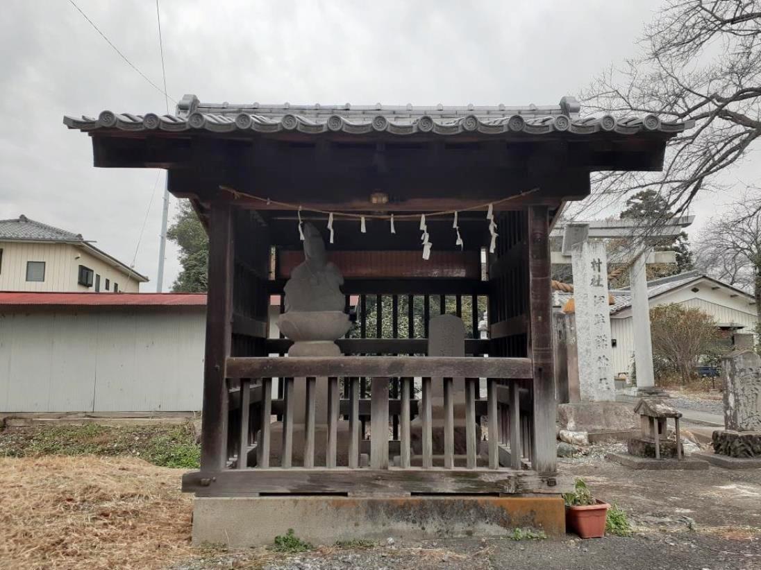 拝殿前には石の階段がある。おそらく北側にある福川の自然堤防からつくりだされた高台、もしくは妻沼低地に点在する自然堤防のひとつであろう。現在の西城神社のご祭神は大山祇命、豊受比賣命、市杵島姫命であるが、すぐ北側に福川があり、旧社名も「大天獏社」ということから、本来のご祭神は「水神」ではなかったのではないだろうか。