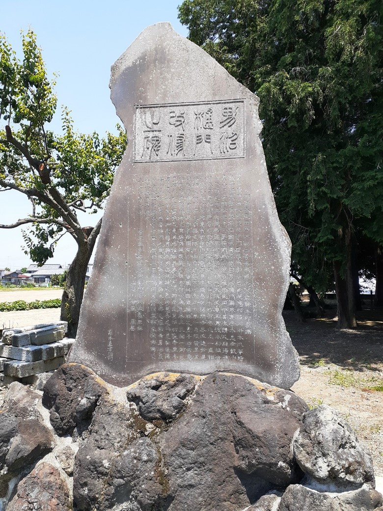 鎮守男沼神明社入口左側にある「男沼樋門改修之碑」