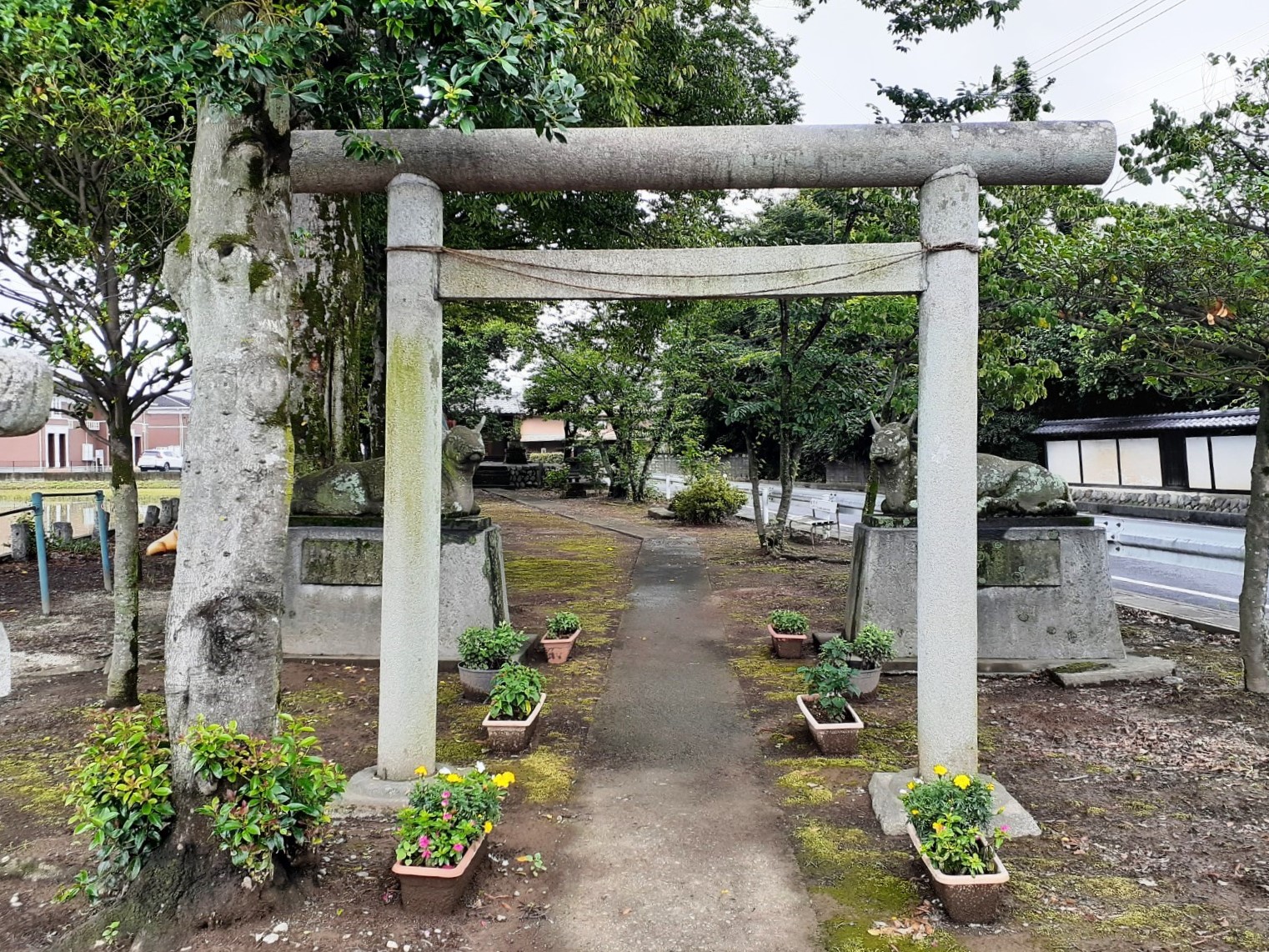 弥藤吾氷川大神社は国道407号線沿いに位置する「道の駅めぬま」前の交差点から東へ向かって行くと妻沼南小学校があり、その道を隔てた東側に氷川神社が鎮座している。境内には社の右手には社務所があり、駐車駐車スペースも確保されていたので、そこに停めてから参拝を行う。