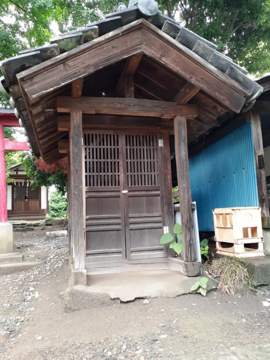 現在、覆屋によって保護されている本殿は、内陣壁画の墨書によれば、天保七年(一八三六)九月十五日、実蔵院別当歓慶のときに再建された。桁を駆使した緻密な彫刻が施される。正面扉には牡丹と宝物、両側面と背面には中国の伝説などを題材とした彫刻ががはめこまれている。そのほかの各部材にも、龍や鳳凰などの神獣、猿やうさぎなどの動物、鷲や鴨などの鳥類、梅やぶどうなどの植物等、さまざまな彫刻が施される。彫物師は、川原明戸の飯田仙之介の弟子で、山神村(現群馬県太田市)の岸亦八である。亦八は、埼玉県指定文化財の越生町龍穏寺経蔵や群馬県沼田市正蔵寺山門などの彫刻を手掛け、群馬・埼玉県内に数多くの優品を残している。