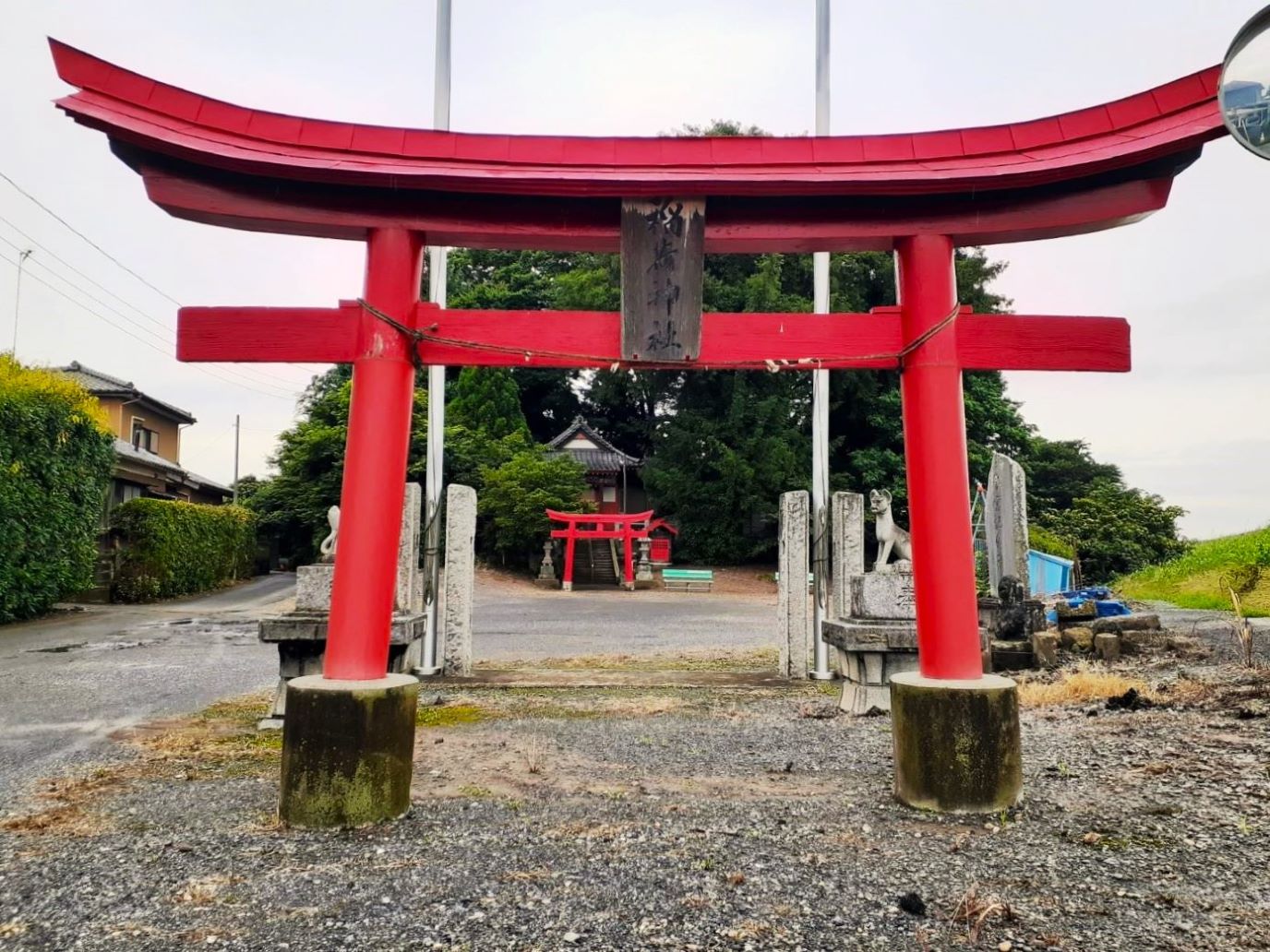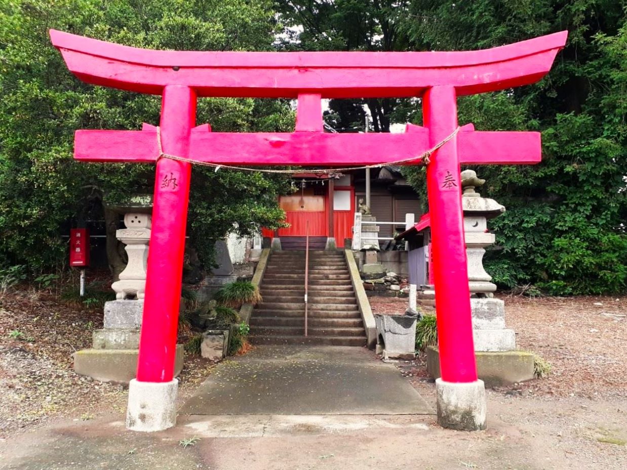 二の鳥居は朱を基調とした両部鳥居 妻沼地域では珍しく案内板が設置
