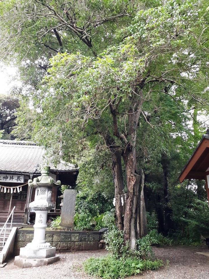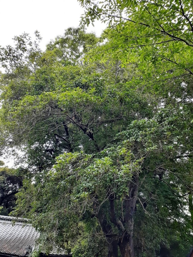 紙垂等はないが、二の鳥居付近に聳え立つ巨木。
