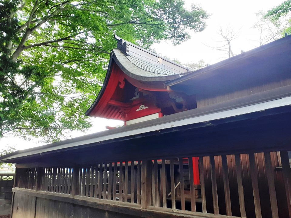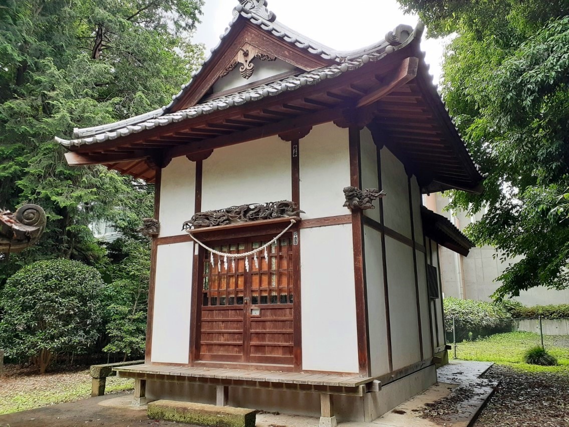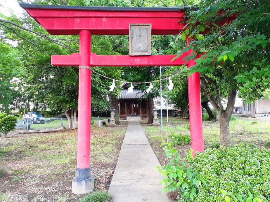 玉作地区の中央部を南北に貫通する「みどりの道」を境にして、西側が本田、東側が新田と呼ばれ、当社は、本田の集落の北端部に、荒川支流の和田吉野川の流れを背に鎮座し、その社殿は水害を避けるために水塚の上に築かれている。