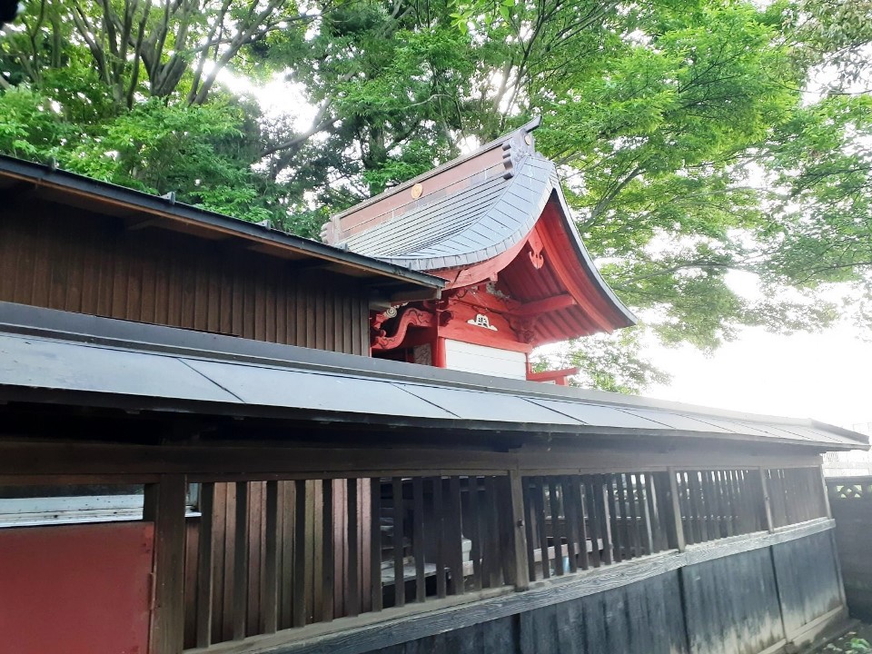 本殿は、古来より流造で、現在建設中、本殿屛に拝殿は往古のままですが、外宇は元大字楊井原新田村社八幡神社の外宇を合祀と共に改築したものです。