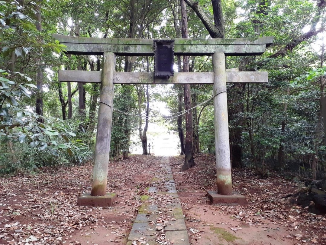 石鳥居に掲げてある社号標        石製の鳥居を過ぎると境内が見えてくる。