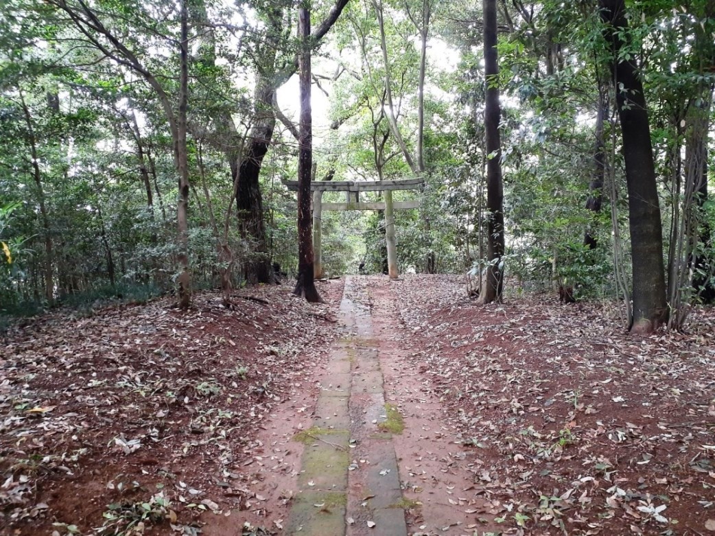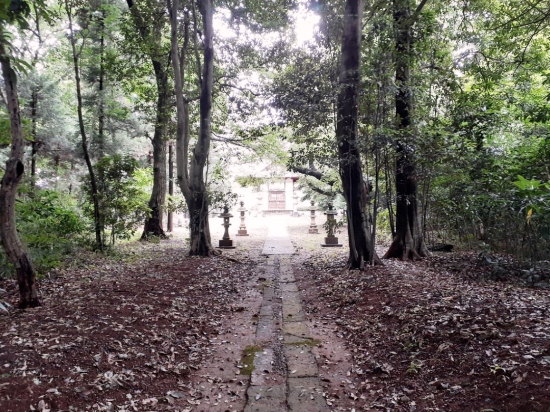 社の東側には吉岡中学校、南側の微高地には民家が立ち並ぶが、北側・東側は台地への境界でもあり、北側は耕作地、東側は崖面もあり、開発されていない。昼間ながらほの暗い場所でもある。