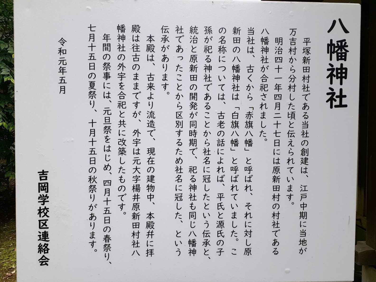 明治四十一年四月二十七日には原新田村の村社である八幡神社が合祀されました。