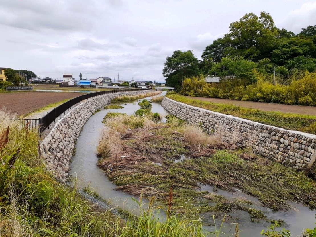 西野長井神社のすぐ北側には福川が流れている。嘗てこの川は妻沼町内から熊谷市にかけて激しく蛇行して流れていて、水害常襲地だったようだ。昭和初期に、蛇行していた河川の水路に対して堤防を築いて改変したため、旧態とは大きく変わっているとのことだ。