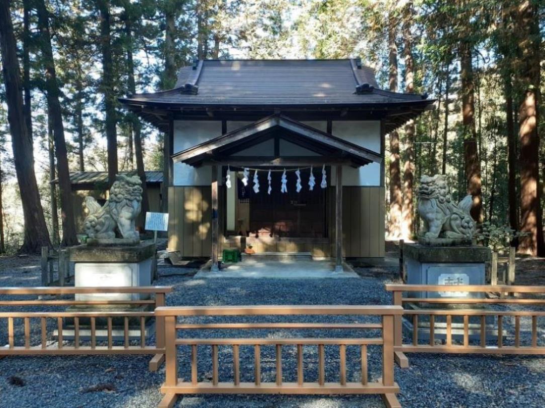 直ぐ下には県道が通っていながら、斜面を上がった瞬間から異世界に迷い込んだようで、荘厳さすら感じてしまうような雰囲気。参道の先にある境内には玉砂利が敷かれているが、その周りには杉の大木等に覆われていて、邪悪なものが近づこうものなら、忽ち浄化してしまうような神聖性が辺り一帯に漂っているようで、自然と身が引き締まるような心持ちとなる。