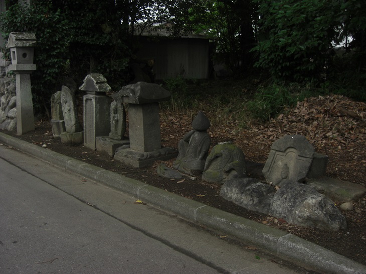 神社の路地に並ぶ石仏等。