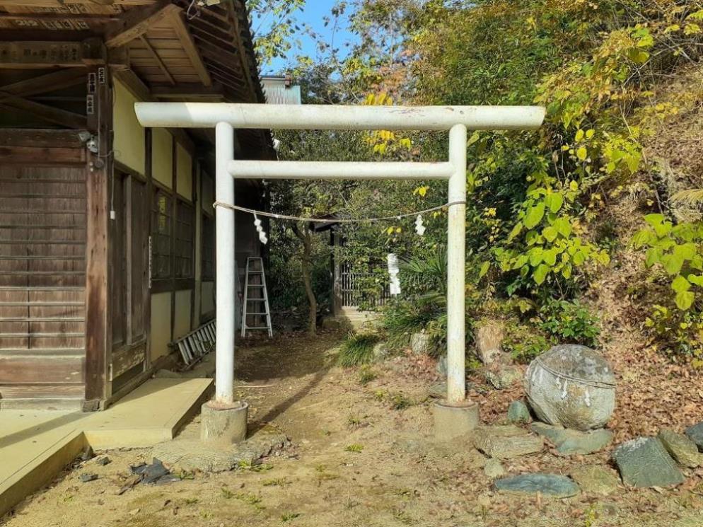 社の西側近隣に「栃谷集会所」があるが、正面駐車スペースにはロープが敷かれているため駐車不可能。そのため、社の正面鳥居前の僅かな路肩に急遽路駐して急ぎ参拝を開始する。