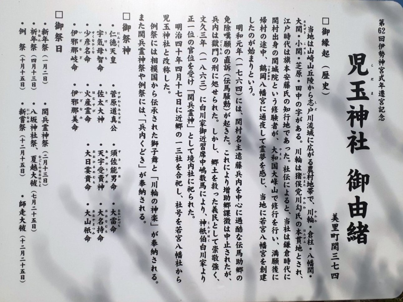 ○兒玉神社 御由緒 美里町関374