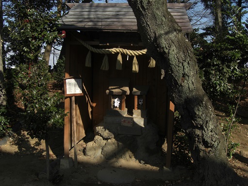 社殿の奥には所狭しと多くの境内社が並んで鎮座している。社殿の右側の奥、方角では北側に当るが、そこには小さな鳥居がポツンとあり、そこから並びに弁天社(写真左)、出羽三山社と彫られた石碑(同右)がある。