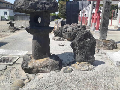 溶岩塚の上に置かれている 白狐社如き祠