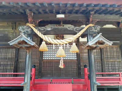 要約すると、八斗島町は利根川流域にある町で、元々は「稗島」という中洲であり、社は安土桃山時代の天正年間(1573~1592)の創立と伝わっている。当時、那波城主だった大江顕宗が奥州九戸戦争で討死し、その家臣である境野主水吉澄・五十嵐無兵衛知徳の両人が遺志を奉じて、当国利根川の中州の荒野を開拓、その五穀豊穣の守護神として奉斎されたのが当社の起源との事。御祭神は、倉稲魂命・大宮姫命・大田命・大己貴命・保食命の五柱。明治になり、村社に列し、明治43年(1909年)には神饌幣帛料供進社に指定されている。