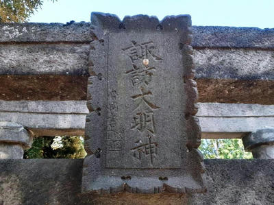 一の鳥居から順番に「正一位飯玉大明神」(写真左)「諏訪大明神」(同右)の社号額が架けられているので、三番目の鳥居には当然「八幡神社」の社号額であると思ったが、何故か「飯玉大明神」となっていた。