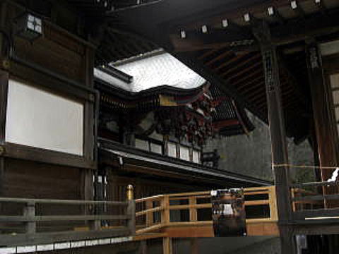 拝殿の右側にある神楽殿 社殿、神楽殿の右手には厳島神社等、境内社