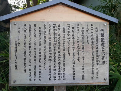 高札場には、この市の守護神として天王宮が祀られていました。この宮の祭りは盛大で、近郊の村々から見物客が多く訪れたということです。祭りは、現在の「境ふるさとまつり」に引き継がれています。