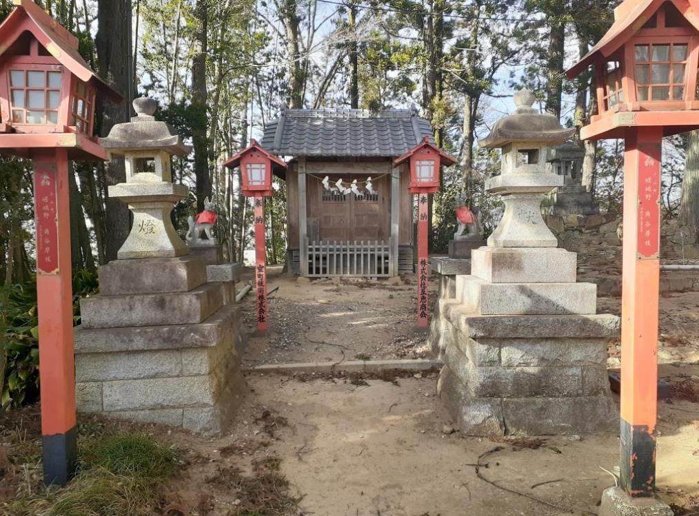 創立 金山城と同時、本丸の東北隅に八幡宮と共に石の祠に祀られ、明治初年ここに創建された。