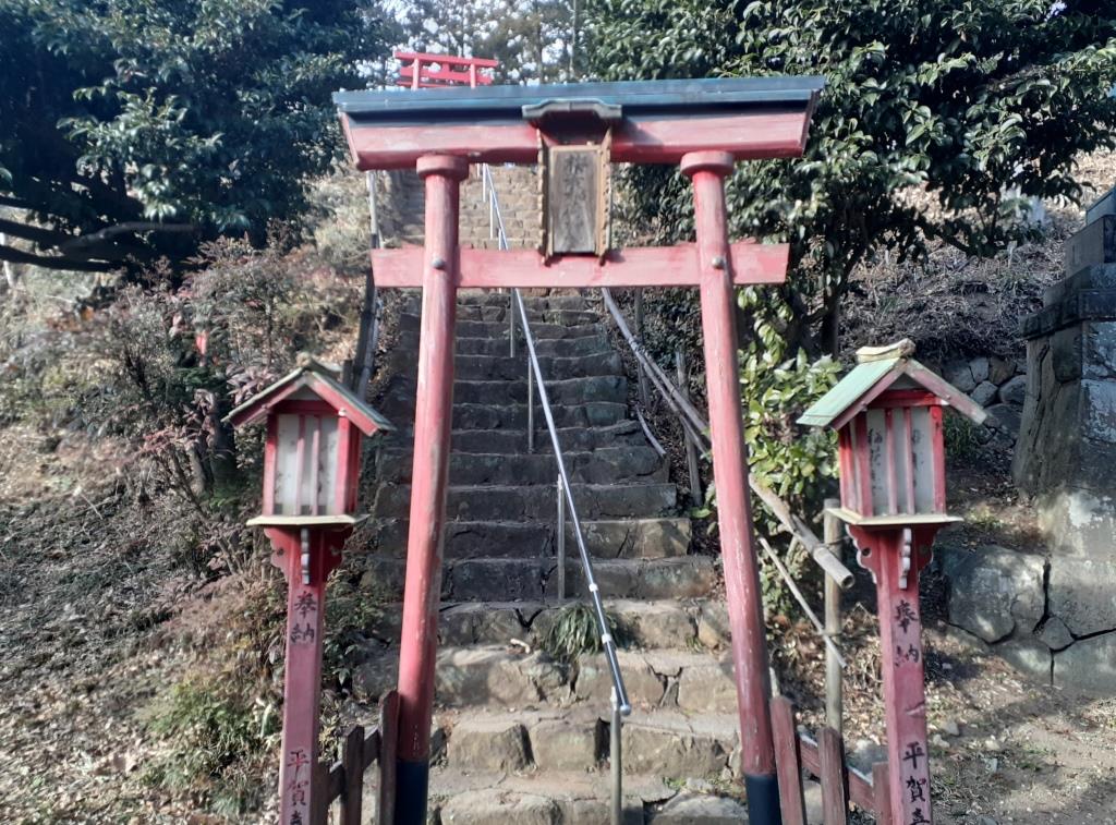 金山町御嶽神社の左側に祀られている梅若稲荷神社(写真左・右)