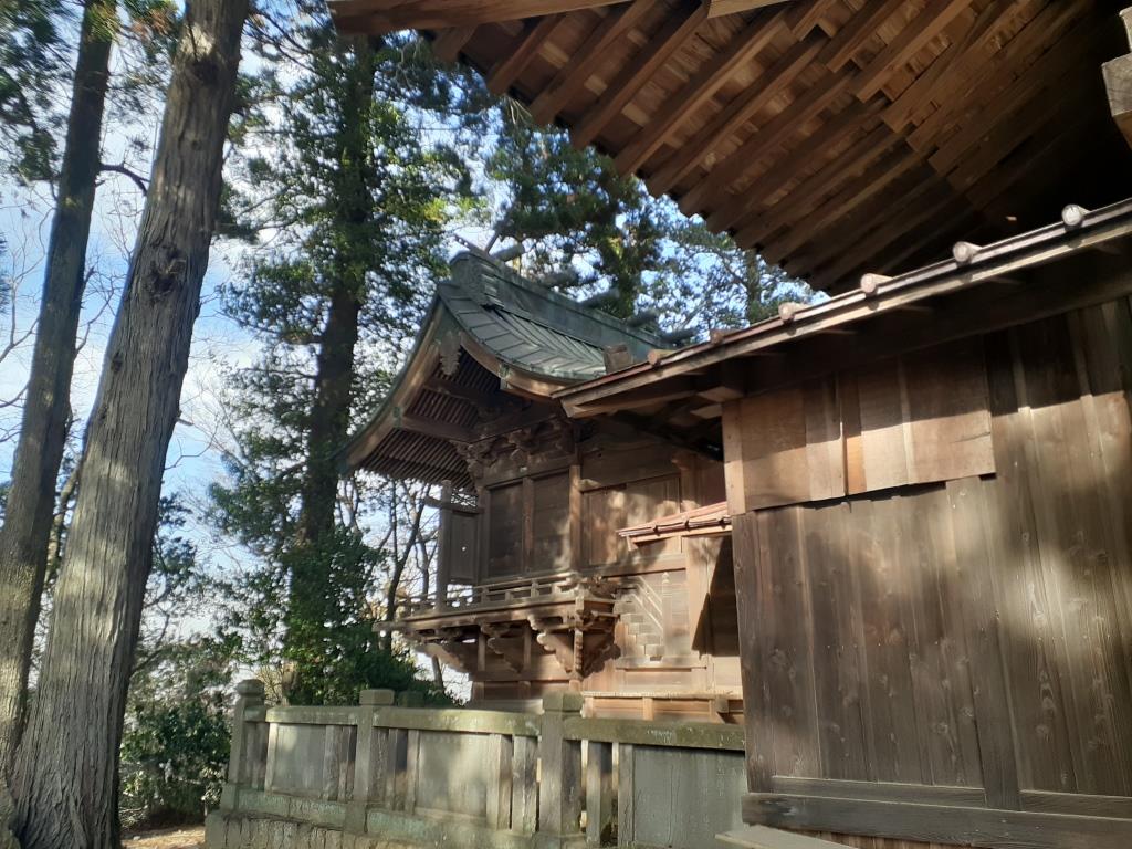 金山城跡本丸に鎮座している社は新田神社だけではなく、御嶽神社・梅若稲荷神社も並列して三座祀られている。御嶽神社は、明治六年(1873)創建であるが、それ以前から石祠として鎮座していた様である。現在の社殿も規模が大きく立派で、旧県社の格式を持つ新田神社より風格を感じる社だ。