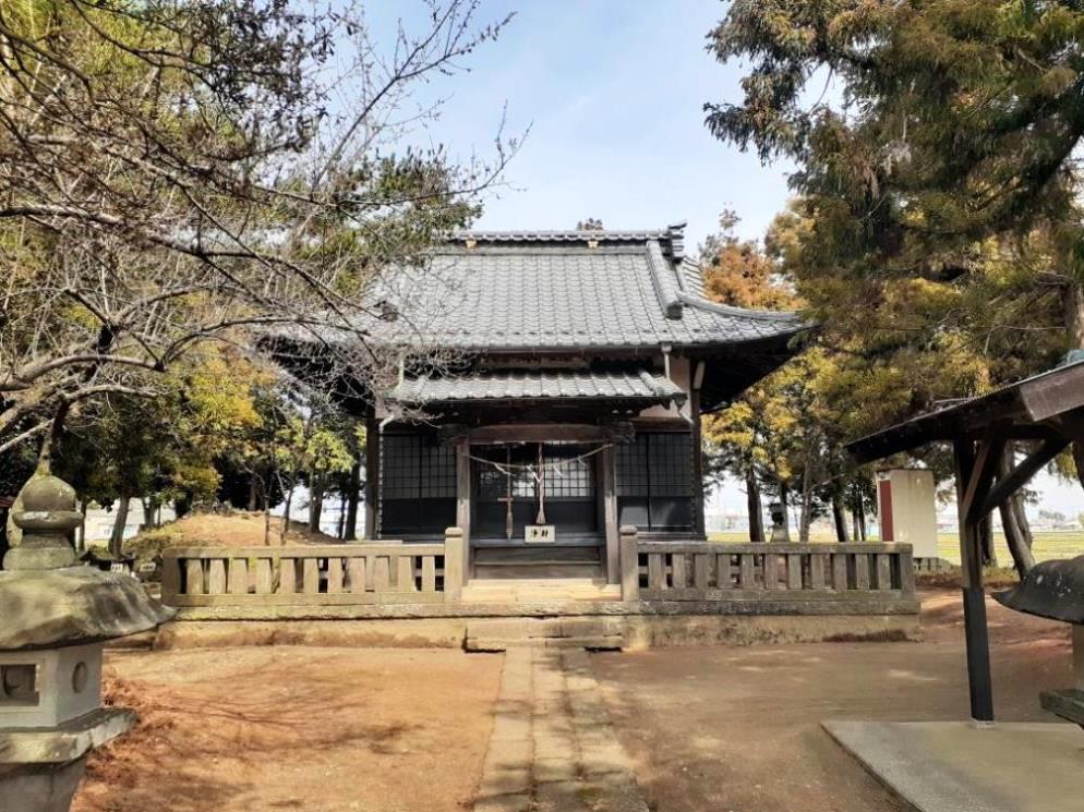 社から南側、直線距離で360m程の利根川堤防の中段には、通称「奈良石」と呼ばれている高さ1m47㎝、幅1m3㎝の記念碑がある。この奈良石は文政年間の洪水のときに、被災民の救済と復興に尽くした、武州熊谷の下奈良村の富豪・吉田市右衛門の恩義に対し感謝の意を込め、その徳を永久に伝えるために須賀の人々が、天保13年(1842年)に建てたものであり、その由来が刻んである。