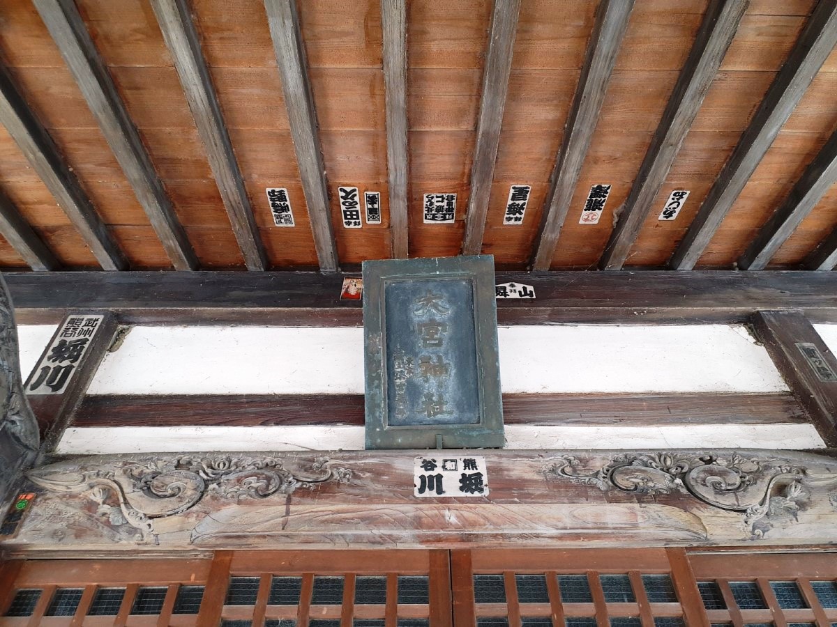 行田市持田地域に鎮座している大宮神社は、忍城址から直線で南西方向500mの所に祭られている。これは所謂「鬼門除け」の神社として重要な位置にあったことが分かる。