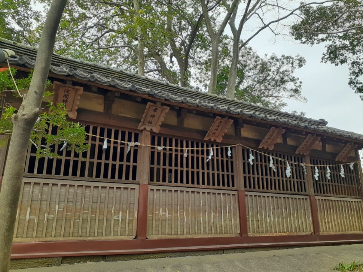浅間・雷・天満・矢矧・熊野・諏訪の各境内社 本殿と隣接するように鎮座している