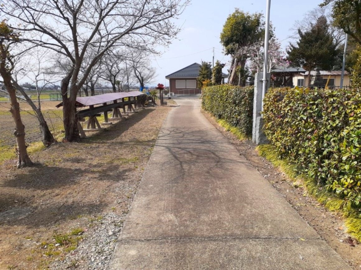 西方向に参道が伸びるが途中で北に折れ曲がり社殿に至る。正面にはふるさと館皿尾センターが見える。因みにふるさと館皿尾センター手前には「皿尾城」の石碑あり。