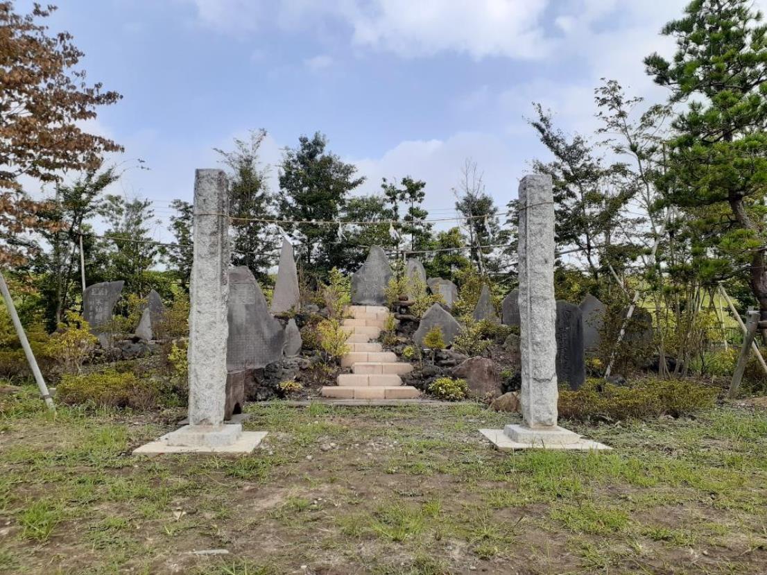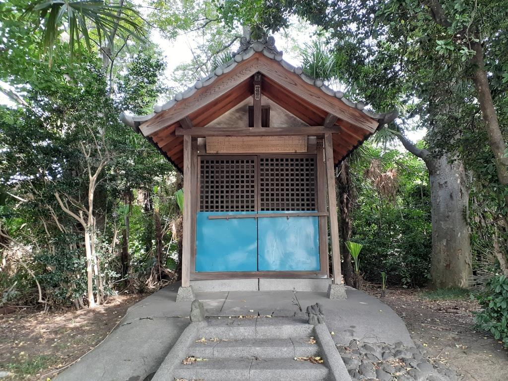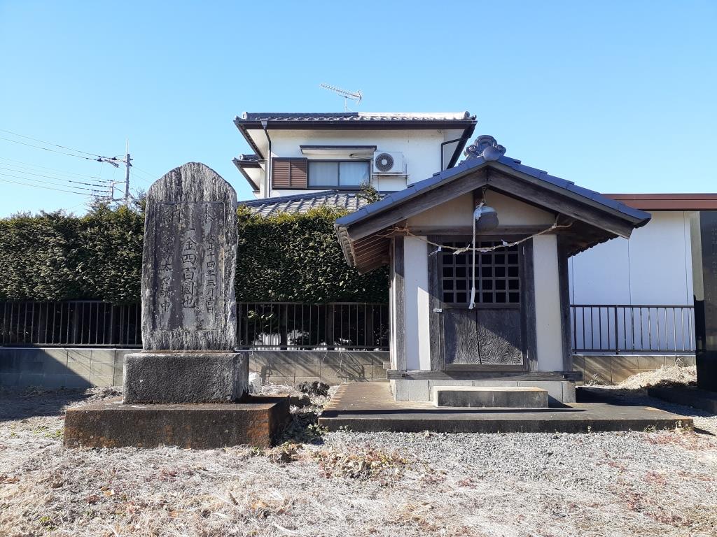 参道左側に祭られている境内社。詳細不明。 その右側並びには「久伊豆神社改築碑」あり。