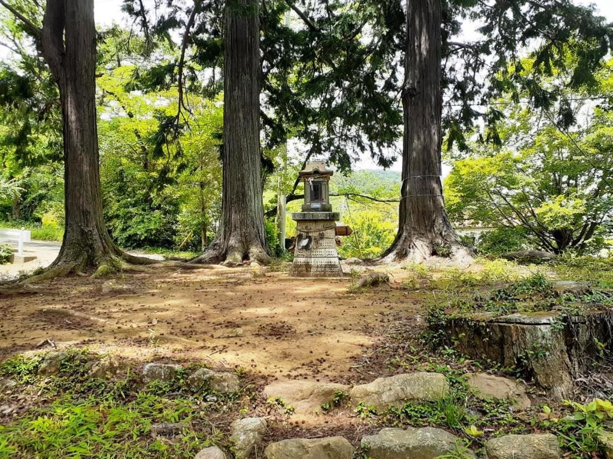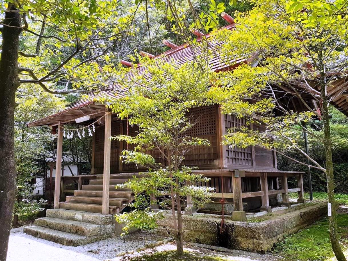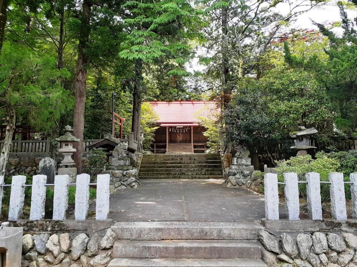 社は高取山麓の緩やかな斜面上に鎮座していて、石段上にある拝殿。
