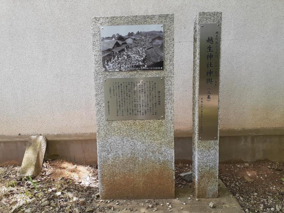 越生神社は大字越生の八幡神社、八坂神社、日吉神社、大字黒岩の八坂神社ほかの神社を当地の琴平神社に合祀して、明治四十二年(一九〇九)に造営された神社である。