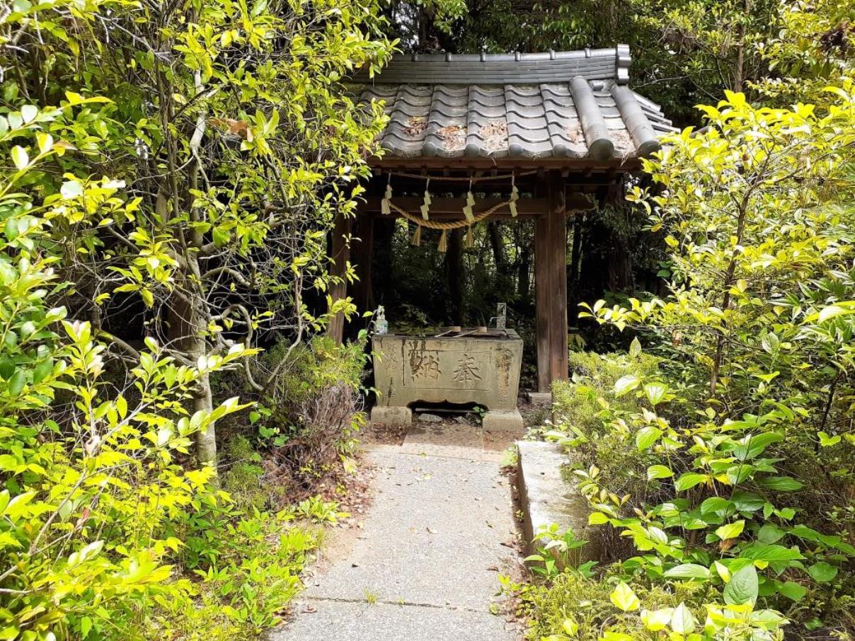 隋神門を過ぎ、石段を登ると社殿が見えてくる。   石段を越えた右側奥に手水舎がある。