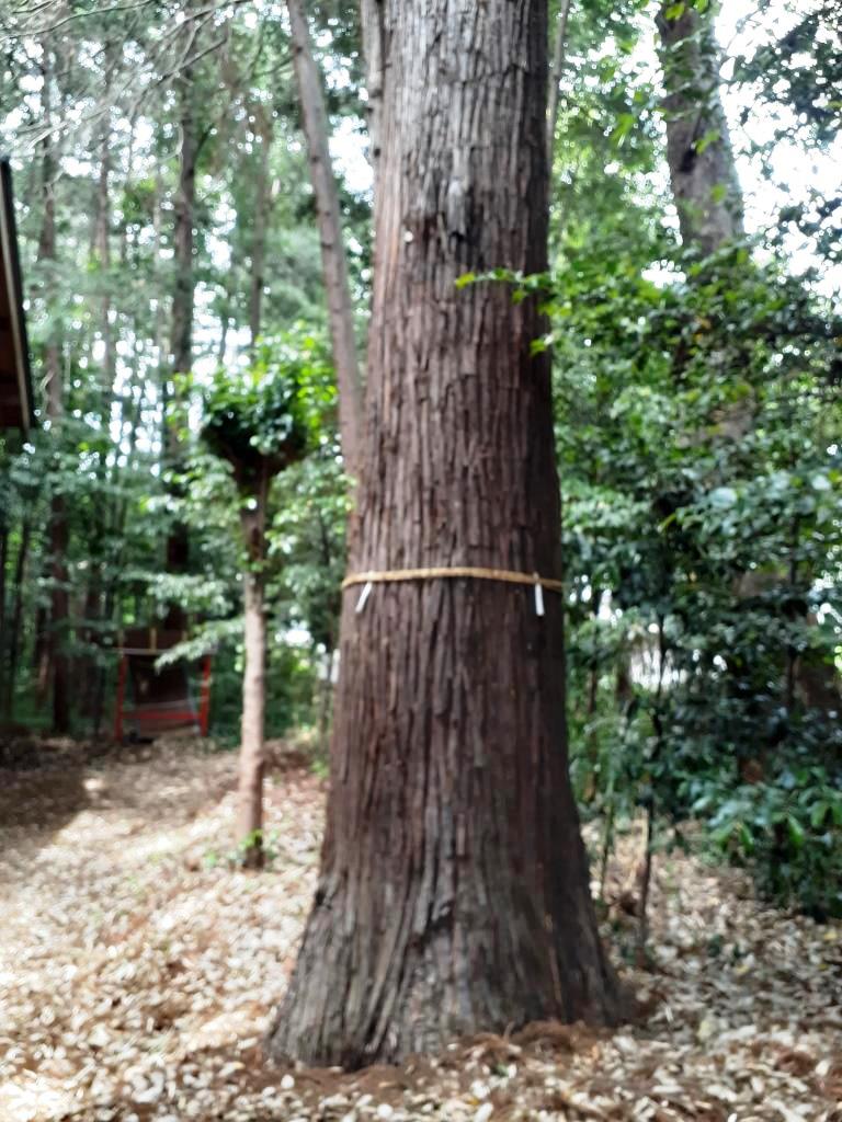 本殿の右手奥に聳え立つご神木(写真左・右)